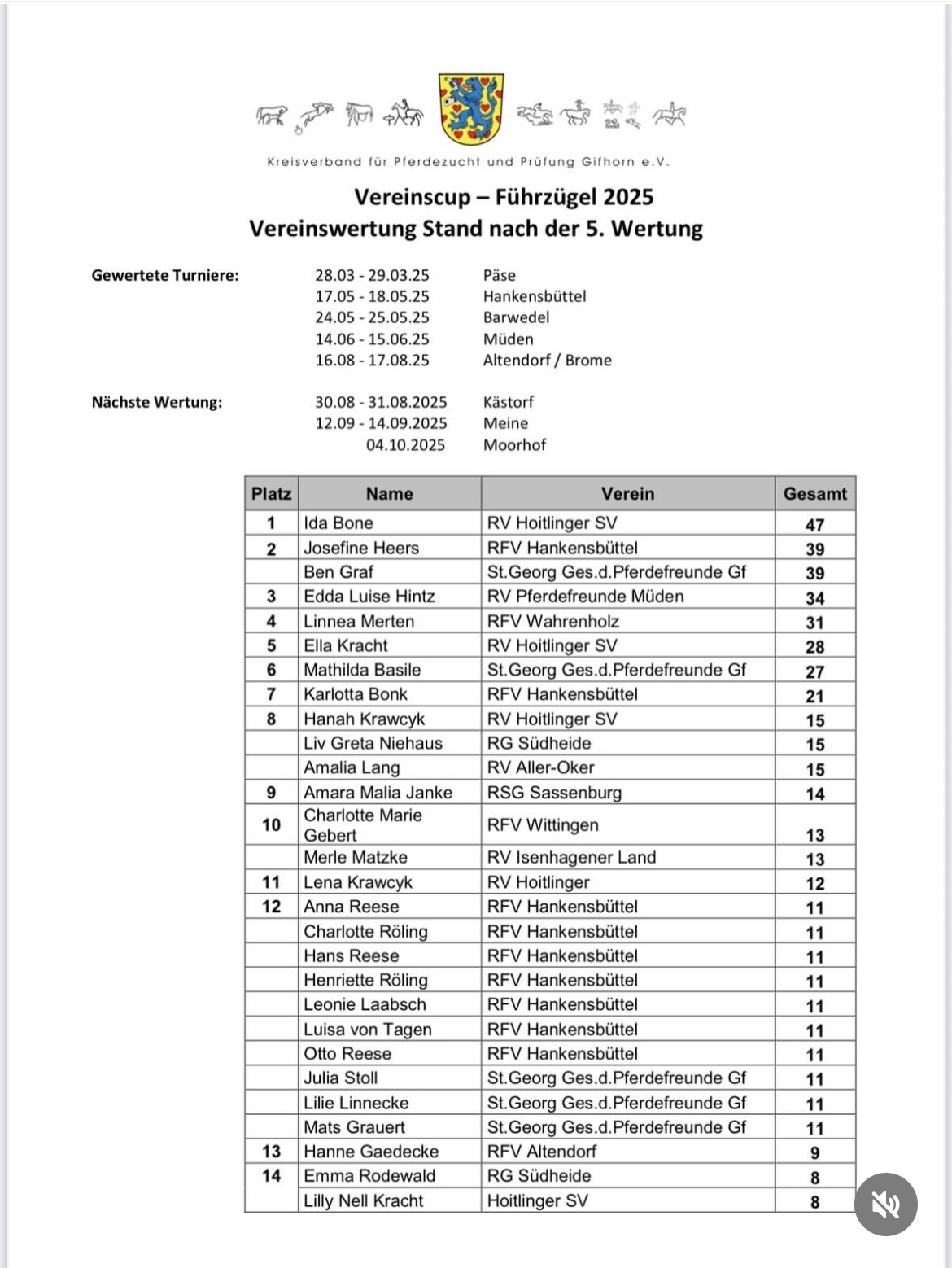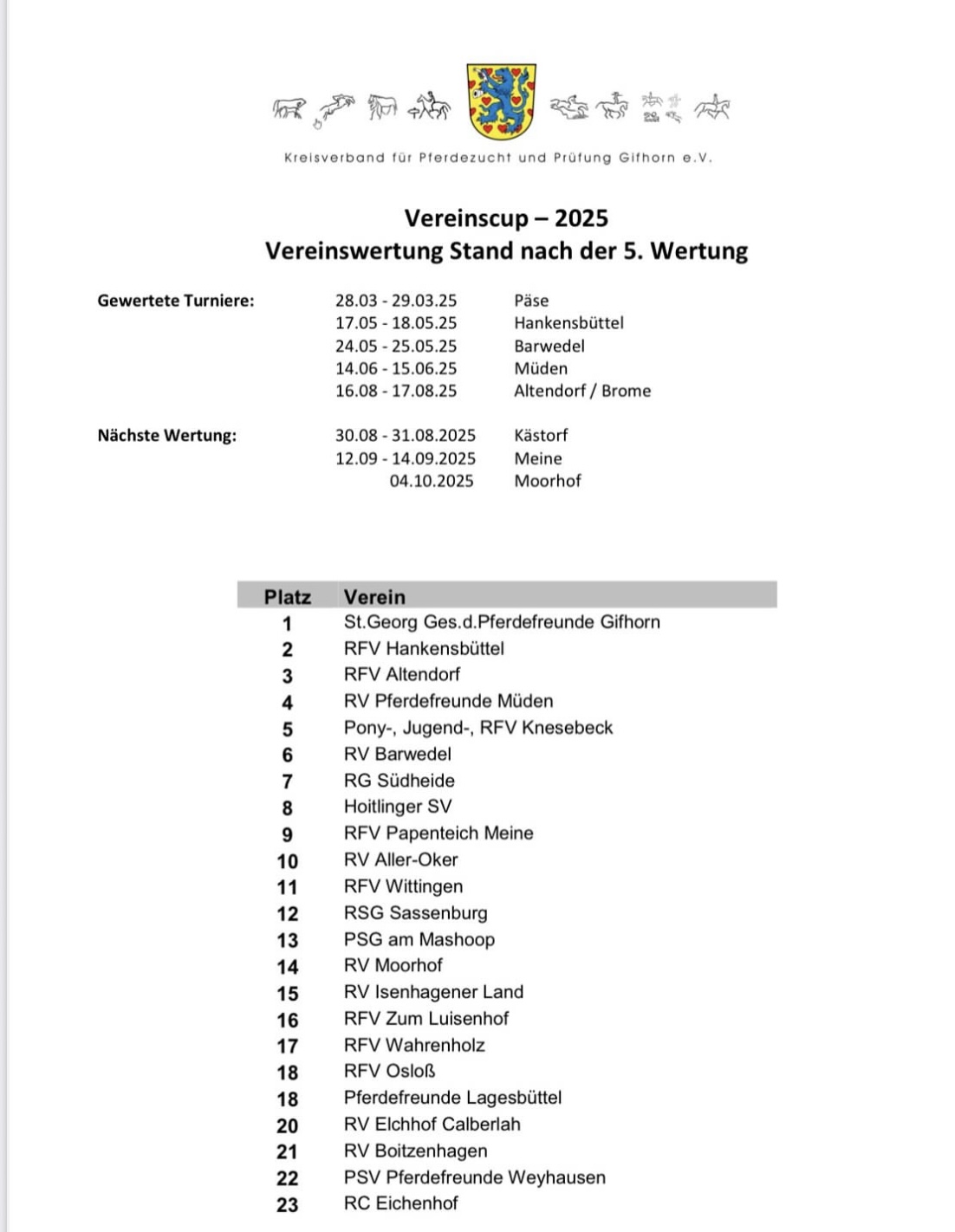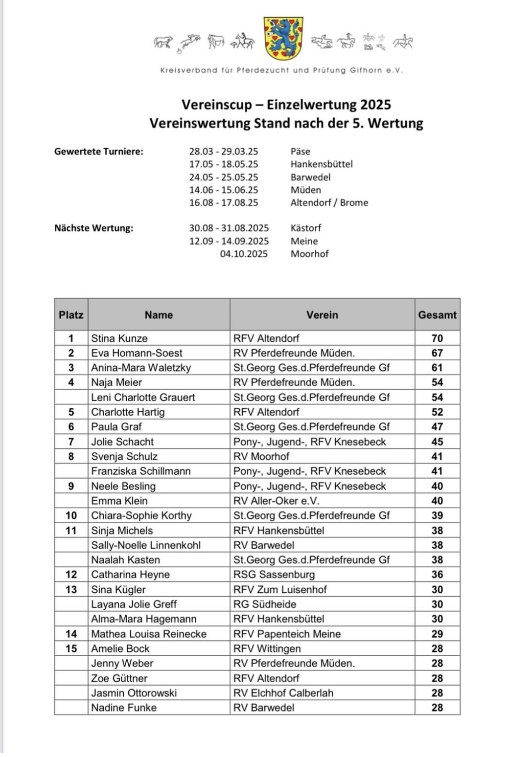 Stand nach dem 2. Turnier (Hankensbüttel)