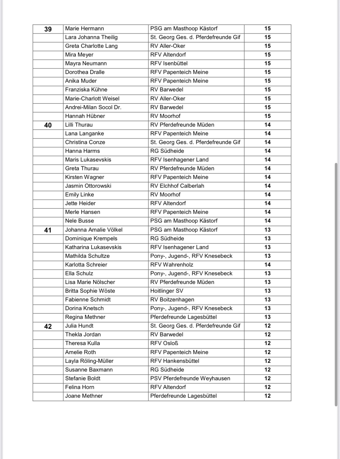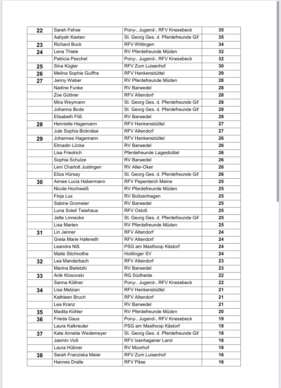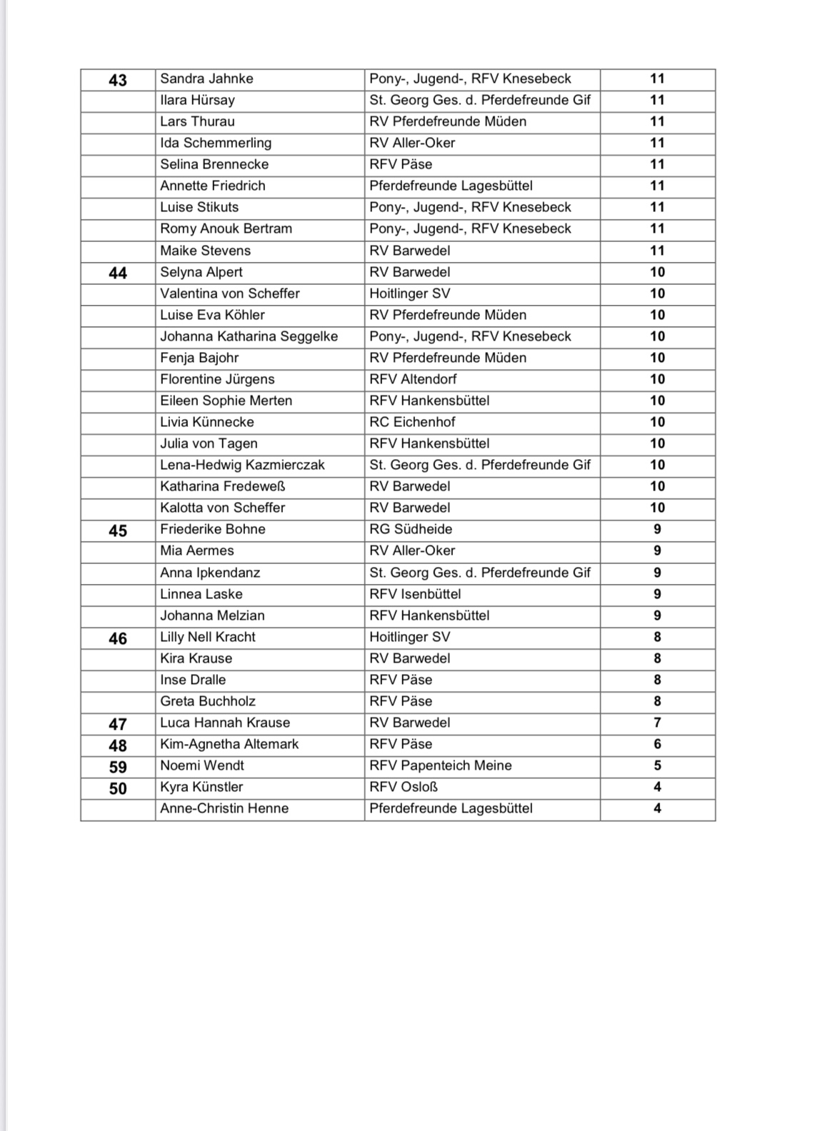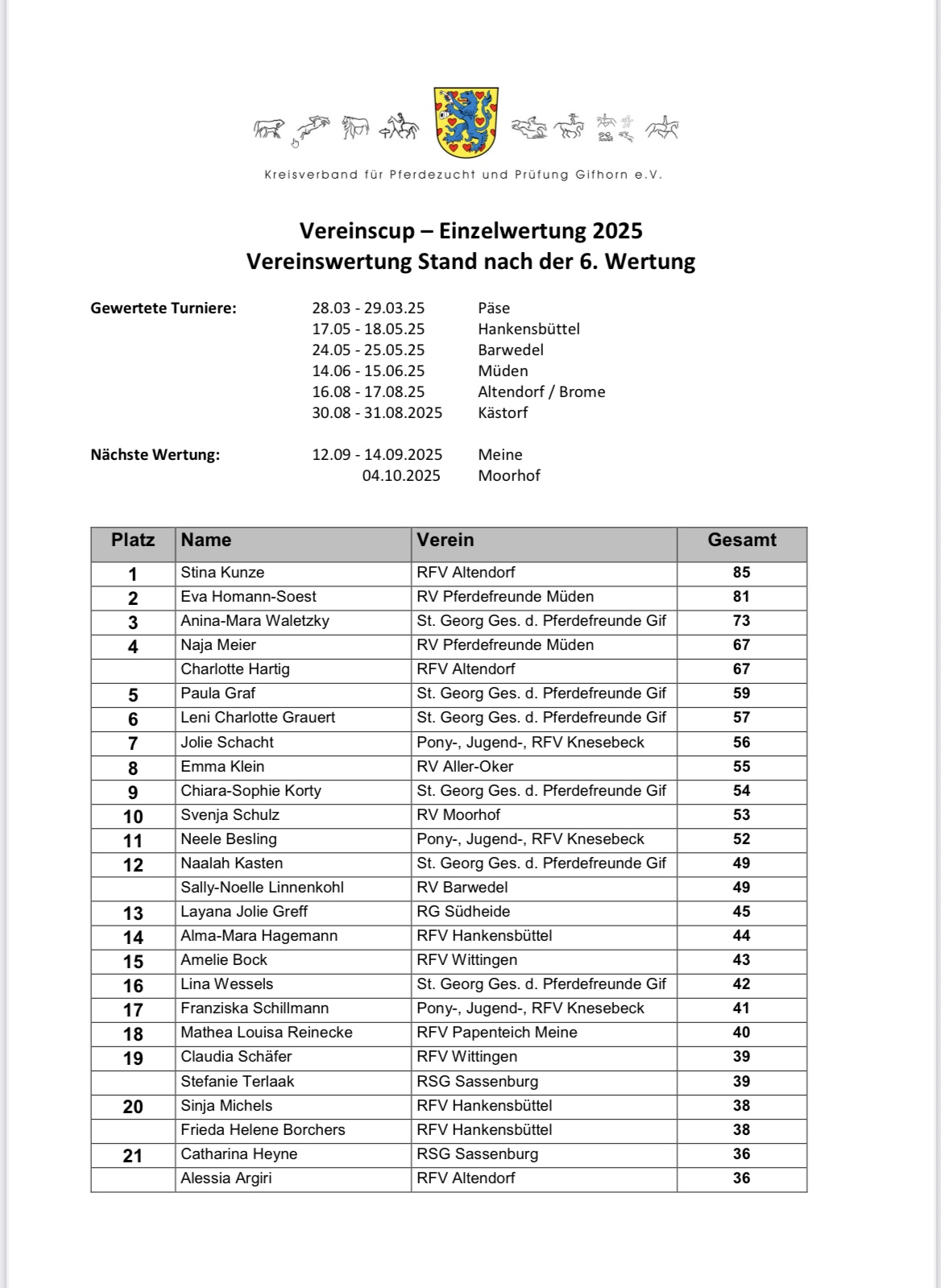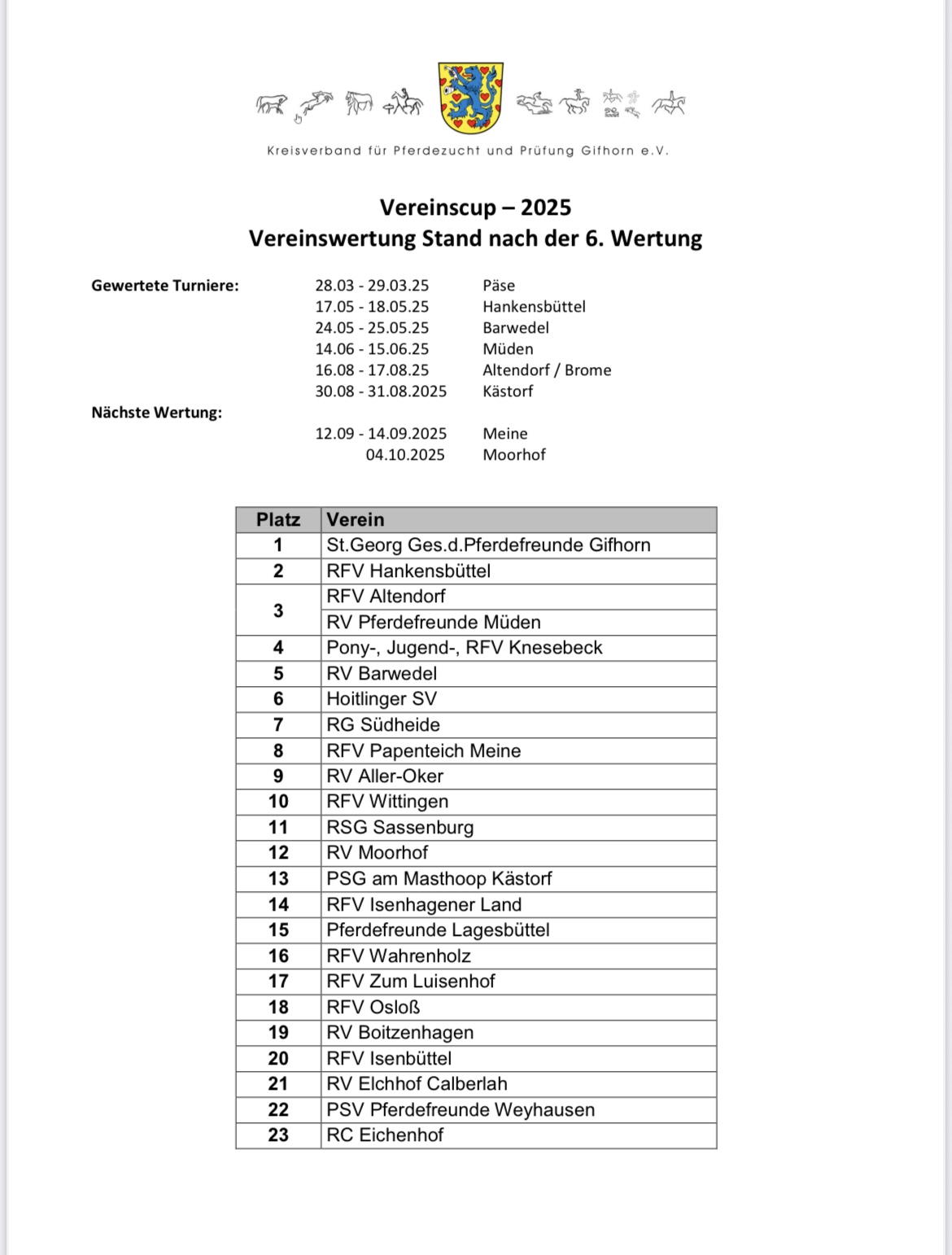 Stand nach dem 2. Turnier (Hankensbüttel)