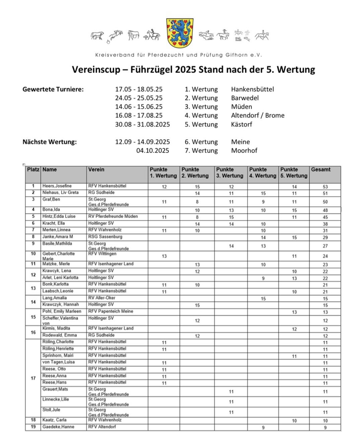 Stand nach dem 5. Turnier (Altendorf/Brome)