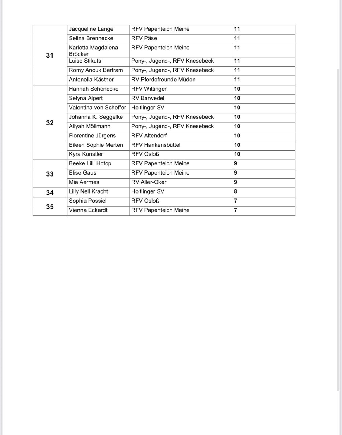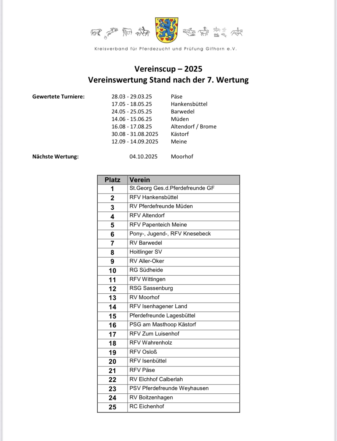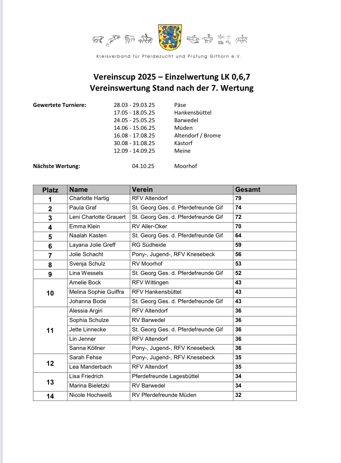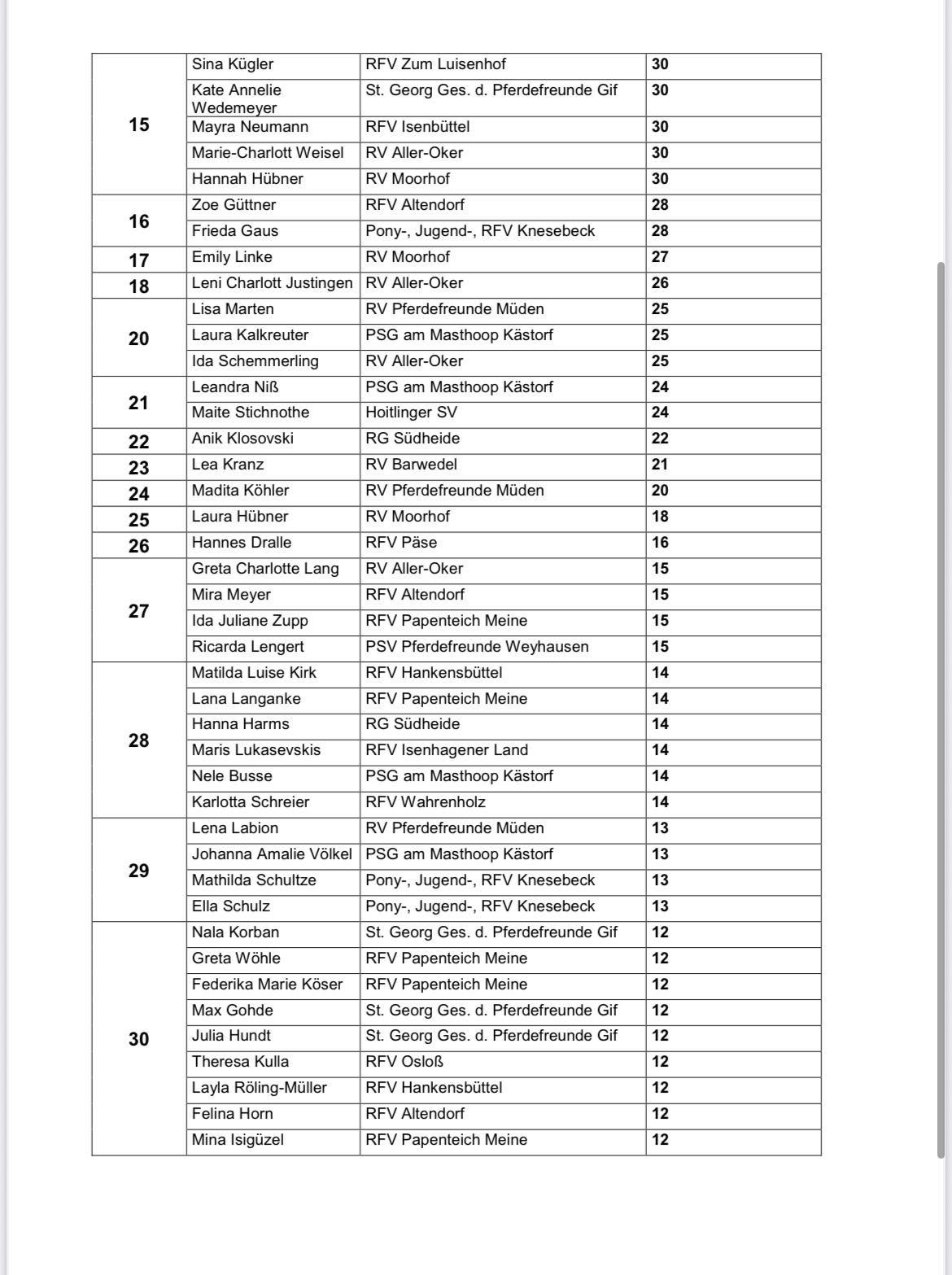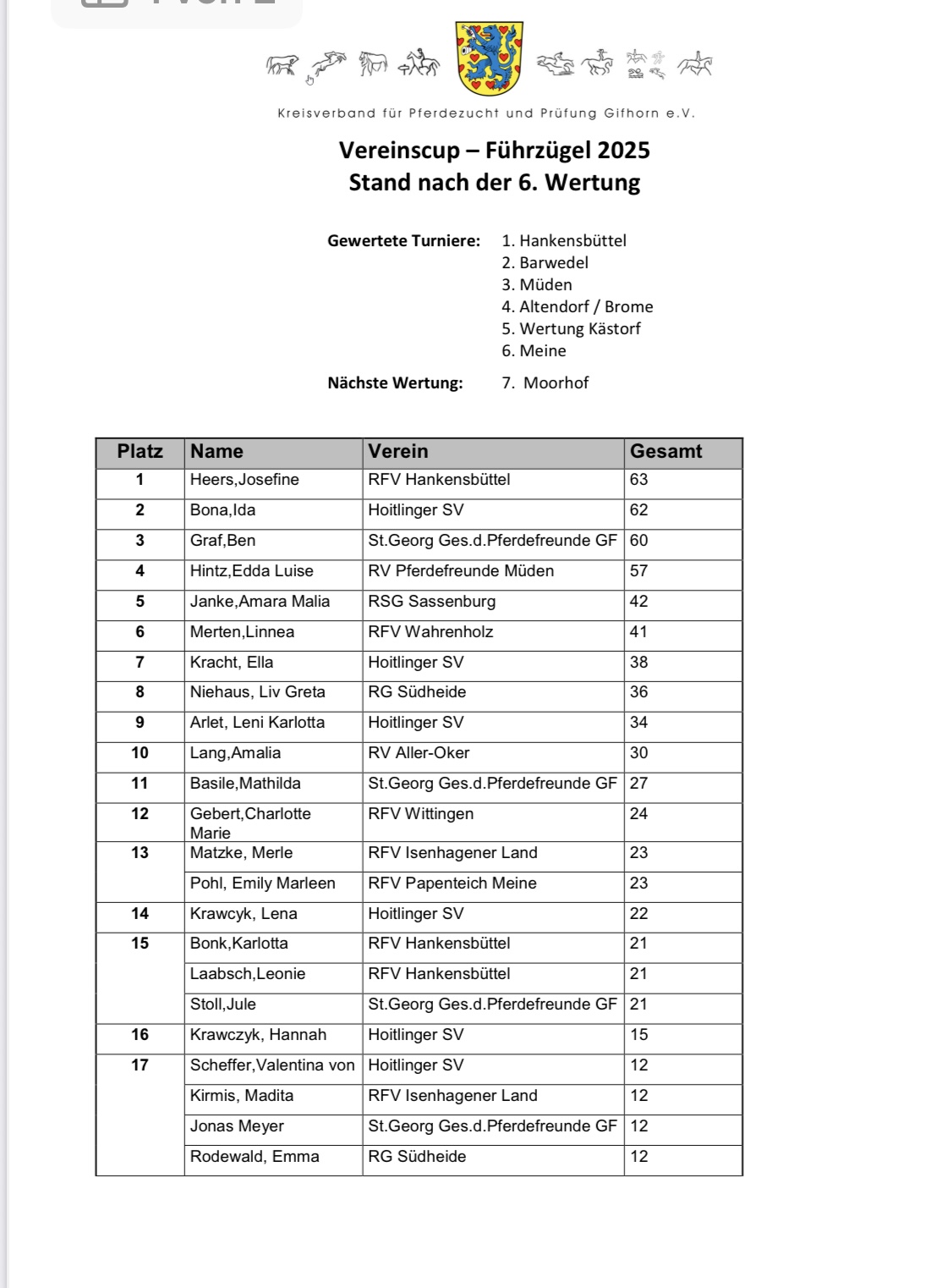 Stand nach dem 2. Turnier (Hankensbüttel)